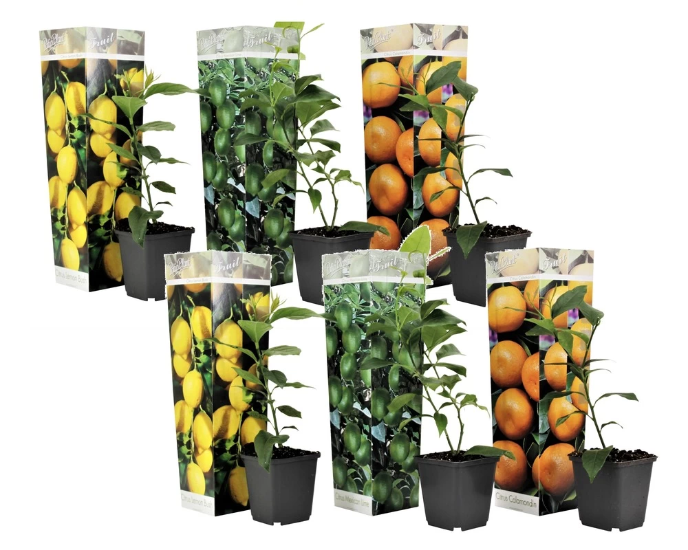 Assorti de 6 plantes d’agrumes délicieusement parfumées. De belles couleurs, des senteurs douces et si tout va bien quelques fruits cultivés par vous-même! En plus de leurs jolies fleurs parfumées ces plantes méditerranéennes restent vertes pour que vous puissiez en profiter toute l’année. Le set contient 3 jeunes plants qui peuvent devenir de véritables arbres fruitiers grâce à vos soins. Les délicieux parfums de fleurs se dégagent dès l’ouverture de votre colis. Les plantes sont livrées avec des instructions d’entretien et peuvent être plantées immédiatement. Les plantes peuvent être cultivées comme plante d’intérieur, de jardin ou dans votre patio et apporteront une touche de vacances!