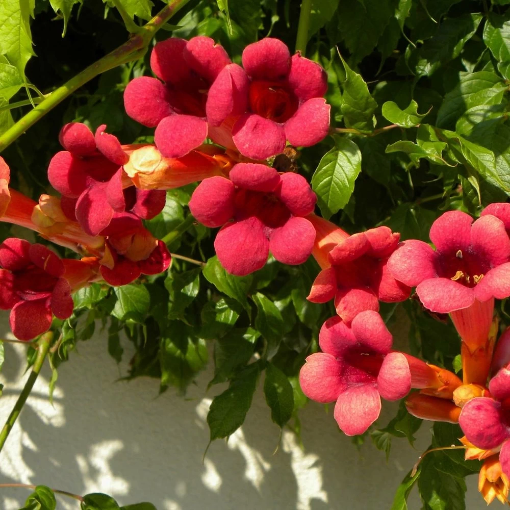 comme les autres bignones, cette grimpante se fixe seule grâce à ses crampons. Grenadine est idéale pour le décor d’un mur ou d’une pergola, à la belle saison.