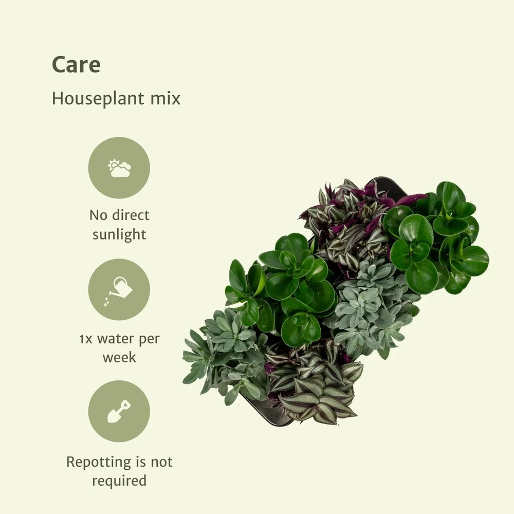 Grâce à cette box de plantes d’intérieur, vous découvrirez de toutes nouvelles variétés. La sélection de plantes est réalisée par nos experts parmi les plantes suivantes : chlorophytum – fittonia – pilea – peperomia – sedum – trandescantia. Ces plantes adore la lumière. Ainsi, il est recommandé de les placer à la lumière indirecte, sans contact direct avec le soleil.