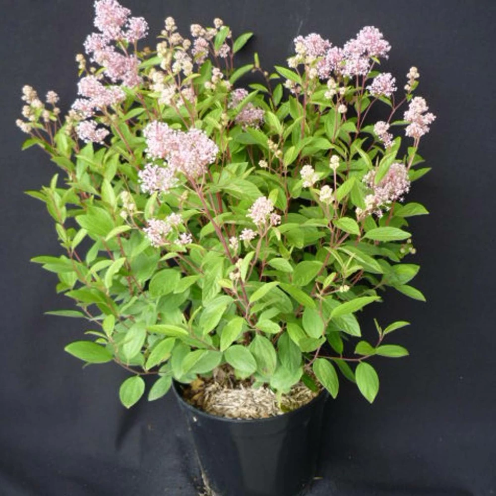 le céanothe marie simon est une variété à la fleur en panicule rose clair. son feuillage vert tendre est caduc.