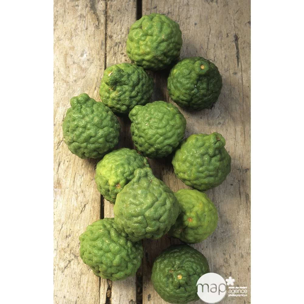 Tout est parfumé dans le Combava : écorce, feuilles, fleurs, fruits. Cet agrume est un petit arbre de 2,5 à 3 m au port érigé, très épineux et très fructifère. Ses feuilles persistantes d’un beau vert foncé brillant sont étonnantes : elle ont un pétiole doublement ailé, ce qui donne l’impression de 2 feuilles en enfilade. De mars à mai, puis en juillet, ses petites fleurs blanc – rosé sont très parfumées. La fructification a lieu de novembre à décembre. Ses petits fruits ronds (5-6 cm) sont des limes vertes grumeleuses, à la peau épaisse et boursoufflée. La pulpe verte est peu juteuse, très acide et avec pépins. Les fruits de couleur jaune sont trop mures.