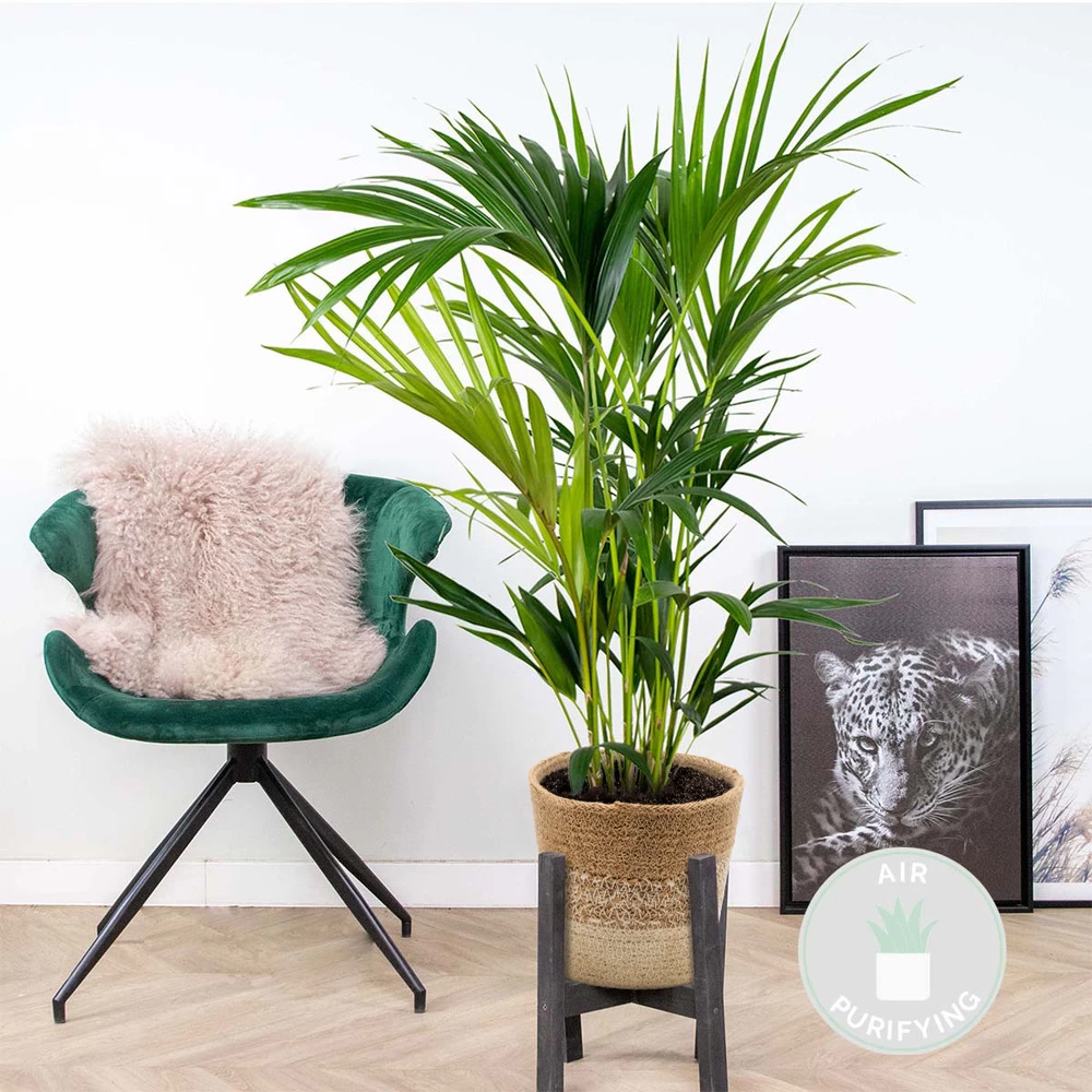 ce palmier populaire appelé howea forsteriana (kentiapalm)incl. Jute basket nea est non seulement spectaculaire, mais a également un effet purificateur d’air. Par exemple, ses belles feuilles vertes fournissent un supplément d’oxygène et d’air pur car elles parviennent à décomposer les substances nocives. Cela rend cette plante adaptée au bureau et à la chambre à coucher, mais certainement aussi au salon. Ce topper tropical est non seulement beau à regarder, mais offre également un meilleur cadre de vie !