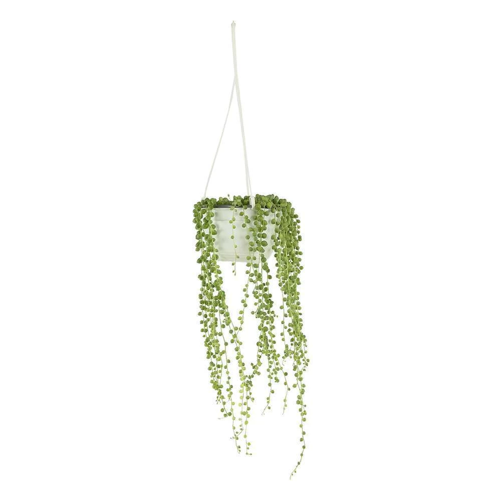 Le genre Senecio (Séneçon) comprend environ 1500 espèces, d’origines cosmopolites. Senecio rowleyanus est l’une de ces espèces, originaire d’Afrique du Sud. Cette plante succulente, rampante ou retombante, atteint 1 m de long. Feuilles très nombreuses, vert clair à vert jade, sphèriques, en forme de perles. Fleurs blanc rosé avec des étamines violettes, en hiver Non rustique. Température minimum:+7°C. La plante ne fleurit bien que si elle bénéficie d’un repos hivernal frais (10°C) et d’une température estivale élevée (25°C). A cultiver en pot avec un bon drainage. Exposition lumineuse, sans soleil direct. Arroser une fois par semaine d’avril à septembre. Maintenir le terreau presque sec en hiver. Donner de l’engrais tous les deux mois au printemps et en été.